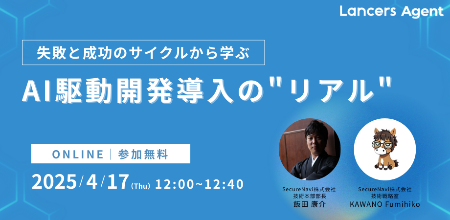 本ウェビナーは、自社プロダクトにおけるAI駆動開発をテーマに、SecureNavi株式会社のプロダクト開発を担うお二人をお招きし、トークセッション形式で開発現場の「リアル」を語っていただきます。