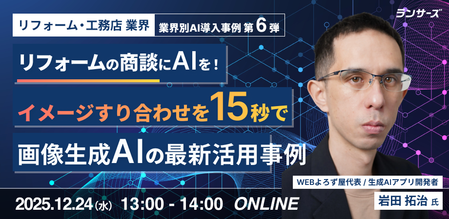 リフォームの商談時に画像生成AIを導入することで成約率を3倍まで高めた事例と共に、画像生成AIの最新活用方法と社内導入時の注意点について徹底解説します!
