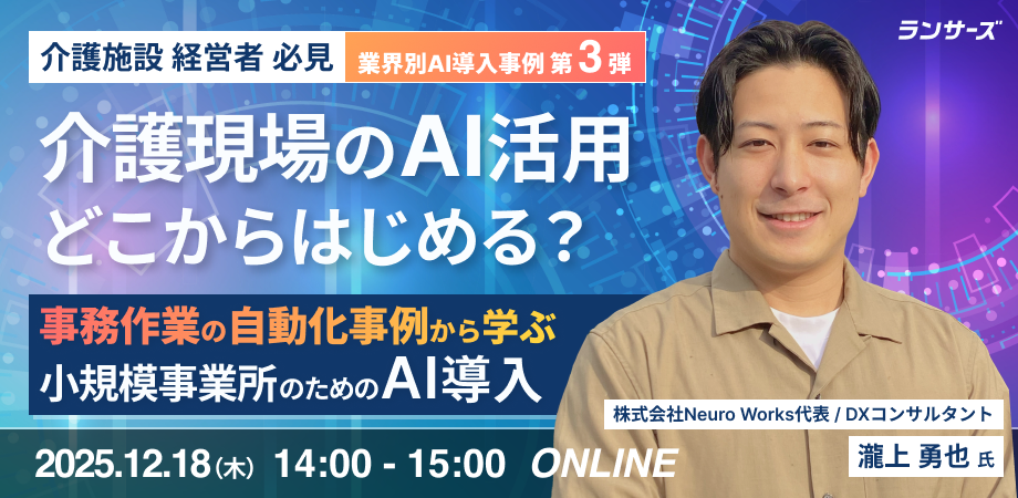 本ウェビナーでは、クリニック・不動産・介護など様々な業界でAIの導入支援をされた 株式会社 Neuro Worksの瀧上氏にご登壇いただきます。