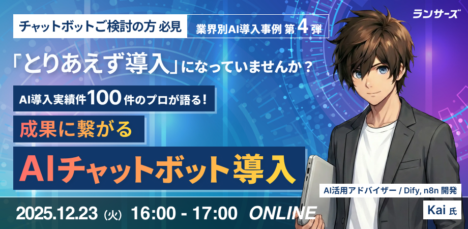 ・AIやチャットボットに興味はあるものの、具体的な導入ステップがイメージできていない経営層・企画/DX担当の方