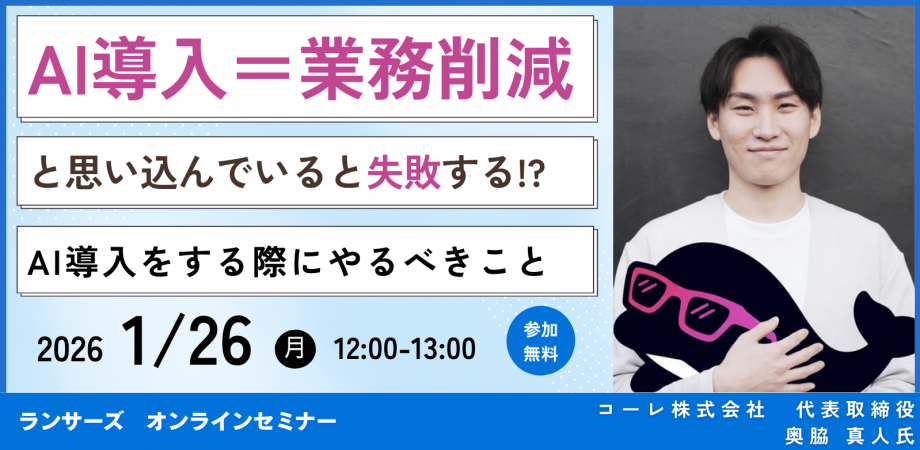 本ウェビナーでは、グローバル向けAIプロダクト開発やコンサルティングの最前線に立ち、テクノロジーとビジネスの両面から数多くの組織変革を支援してきたコーレ株式会社 代表取締役 奥脇 真人氏が登壇。